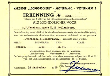 Rond 1916 begonnen Gerrit Willem en Hermannes Wemekamp op Havezate Egede, Landbouw- en Loonbedrijf Wemekamp. De 2 broers waren ondernemende types. De oudste broer Hermannes, vertrok naar Canada. En toen Gerrit Willem in 1930 trouwde met Berendina Kroeze verhuisde het bedrijf naar Hancateweg Oost 15, waar het nu nog steeds in bedrijf is. Omstreeks 1933 werden de eerste tractoren met landbouwmachines aangeschaft voor het loonwerk. In 1934 werd de eerste dorsmachine aangeschaft. Zo werd het werk op het land al veel minder zwaar voor de boeren.