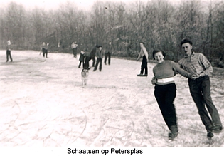 Een buurtbewoonster vertelt: Petersplas lag aan de Hancateweg in een weiland beschut door een bosje. Een ondiepe kolk waar je al snel kon schaatsen. Als het maar een beetje gevroren had, gingen de jongens uit de buurt al kijken hoe sterk het ijs was. Al na een paar dagen vorst kwamen ook de jongens uit de omgeving hier om te schaatsen. Jong en oud had hier veel plezier. Kinderen die leerden er schaatsen en ouderen konden als koppel de prachtigste figuren maken op het ijs. En dan natuurlijk nog de jeugd die hier elkaar leerde kennen. Ik heb hier ook leren schaatsen. Ik was toen 6 jaar en mocht dan gelijk na schooltijd schaatsen. Eerst met een stoel maar al snel was dat niet meer nodig en schaatste ik er vrolijk op los. Later toen ik 16 was, moest ik eerst helpen op de boerderij, als het werk dan af was, mocht ik pas schaatsen. Je begrijpt dat ik het werk toen altijd heel snel klaar had! Het mooist was het schaatsen bij maanlicht.