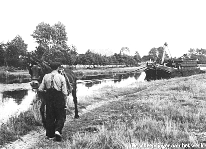 Scheepsjagers Voor 1950 waren er nog veel vrachtschepen die geen motor aan boord hadden, maar alleen zeilen. De zeilen waren het enige middel om vooruit te komen. Als er geen wind was, trokken de scheepsjagers vaak de boten. Voor de grotere afstanden werden paarden ingezet, die trokken tegen een vergoeding de schepen naar hun bestemming.