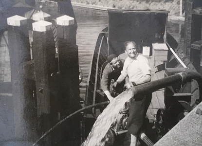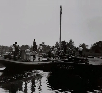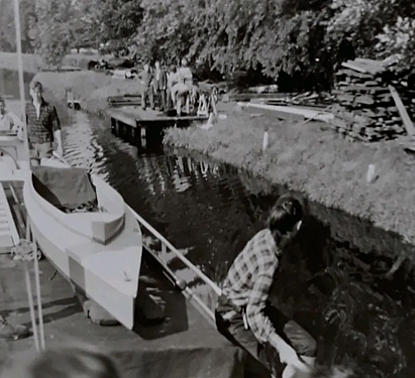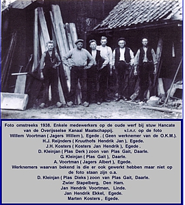 Op een van de foto’s hieronder zie je een kano op de plek van de rails. Op de achtergrond de schaftkeet en de wc. De schaftkeet ging mee op het schip naar de werkplek waar de arbeiders het kanaal, de sluizen en bruggen inspecteerden.