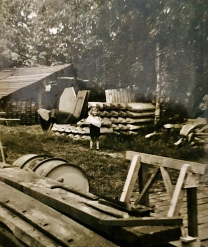 Achter de bomen zie je nog een stukje van de schuur die hier vroeger stond, hier werden de schepen gerepareerd. Hier zie je ook weer de rails waar de schepen mee op het land getrokken werden.